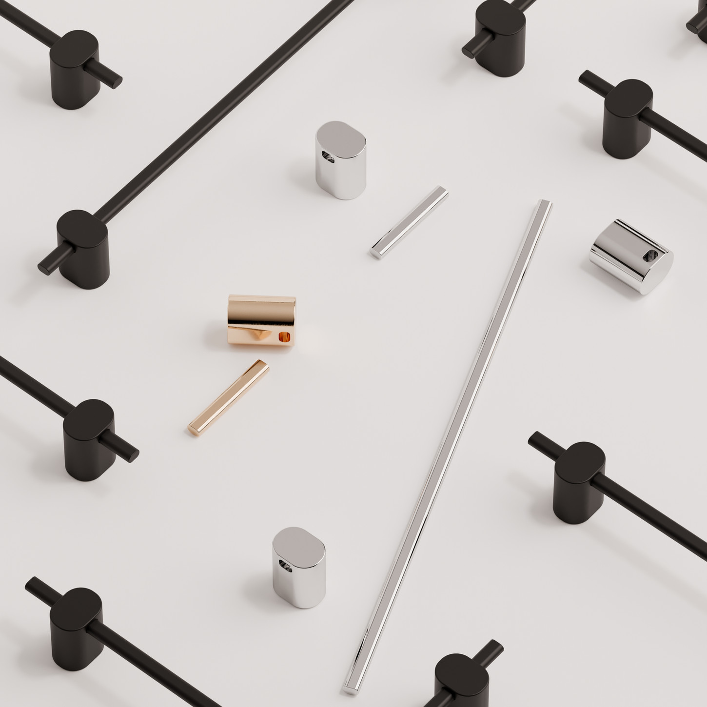 The Twig handles are a feature of the MO_RE collection and also serve as an addition to the Defra brand collections. Designed with a modular approach, the common elements of the Twig handles allow for the construction of both single-point knobs and two-point mounted handles. Their minimalist shape aligns with current trends while maintaining originality through the use of a rounded rectangle form, offering a distinctive aesthetic that complements the sleek and modern designs of the MO_RE and other Defra collections.